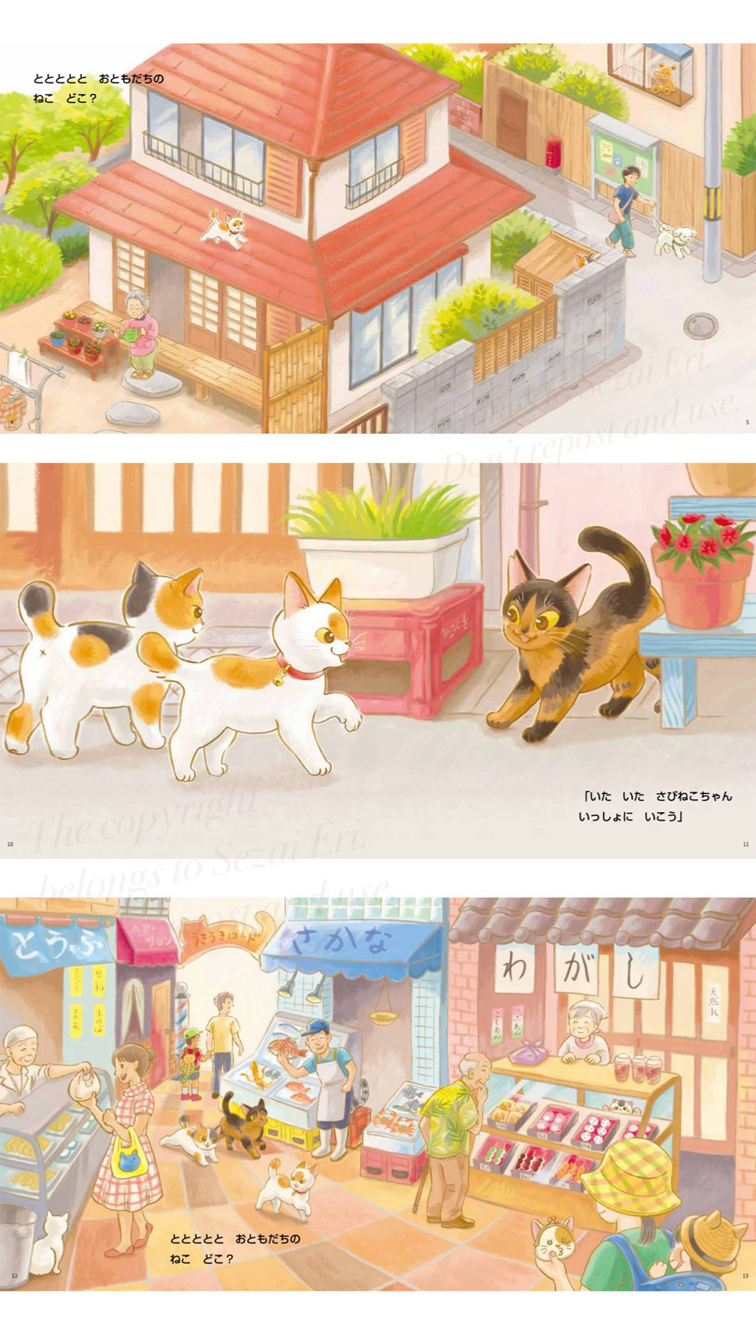 日本の下町に暮らす猫たちが主人公です。 レトロな町の風景にとけ込む猫たち。 「ねこどこ?」と、探しながら物語をお楽しみください♪